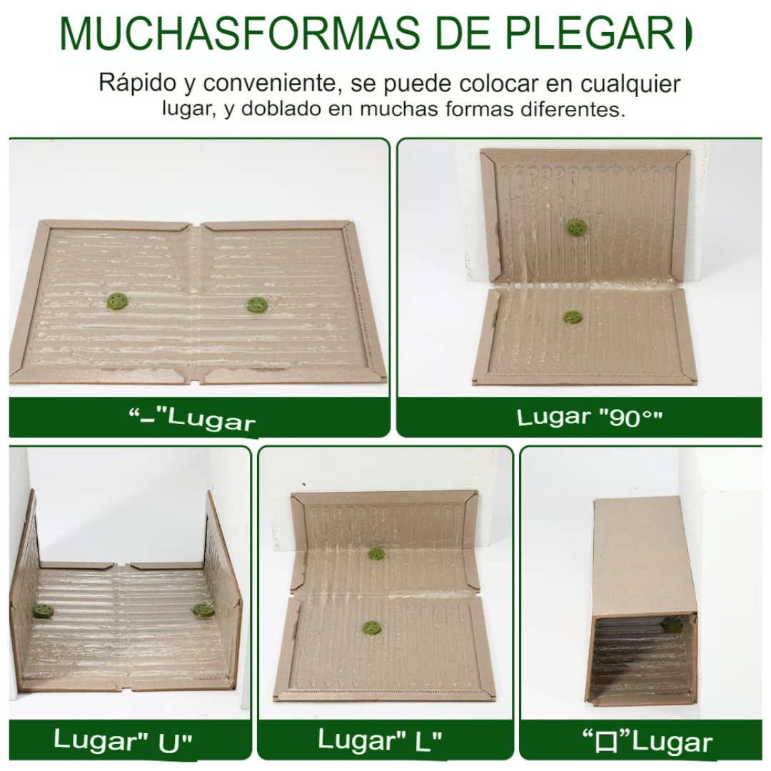 Versátiles: Las trampas pueden plegarse en diferentes formas para adaptarse a cualquier espacio, desde rincones estrechos hasta áreas más amplias.