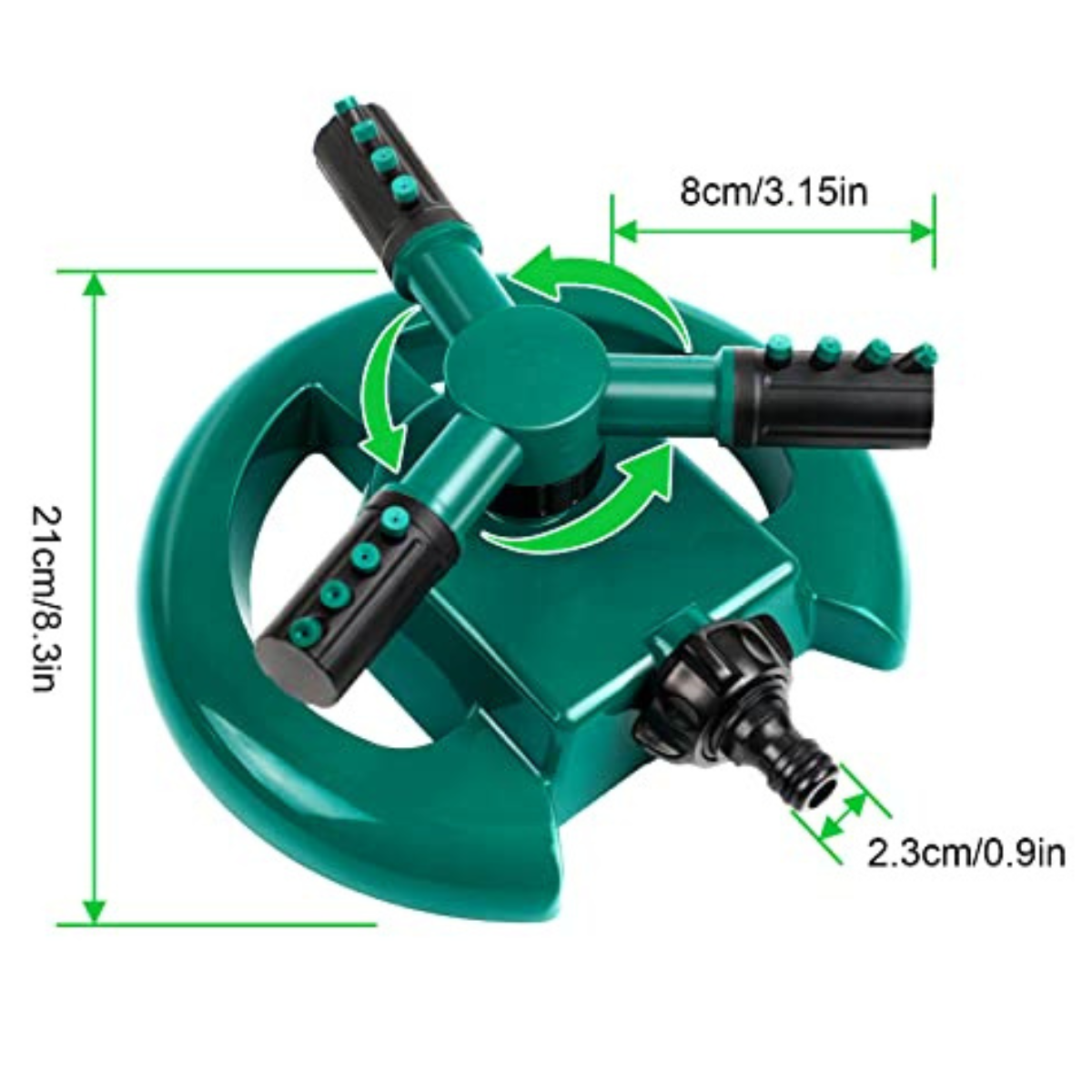 - Cobertura Total de 360 Grados: Con su boquilla giratoria de 360 grados, este rociador puede cubrir grandes áreas de tu césped y jardín, asegurando una distribución uniforme del agua sin dejar ningún rincón sin regar.